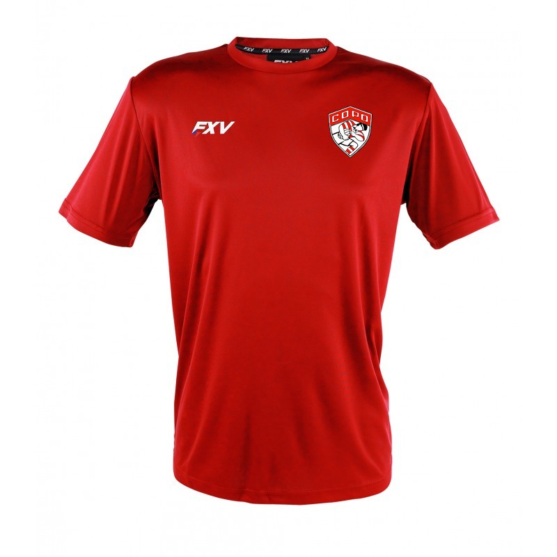 Tee shirt d’entrainement col rond adapté à la pratique du rugby en terme de coupe et de résistance Logo FXV sérigraphié  Logo du club floqué