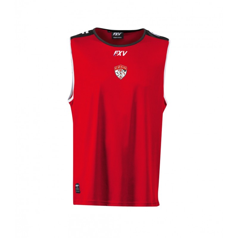 Tee shirt d’entrainement col rond adapté à la pratique du rugby en terme de coupe et de résistance Logo FXV sérigraphié opposé cœur Logo du club floqué